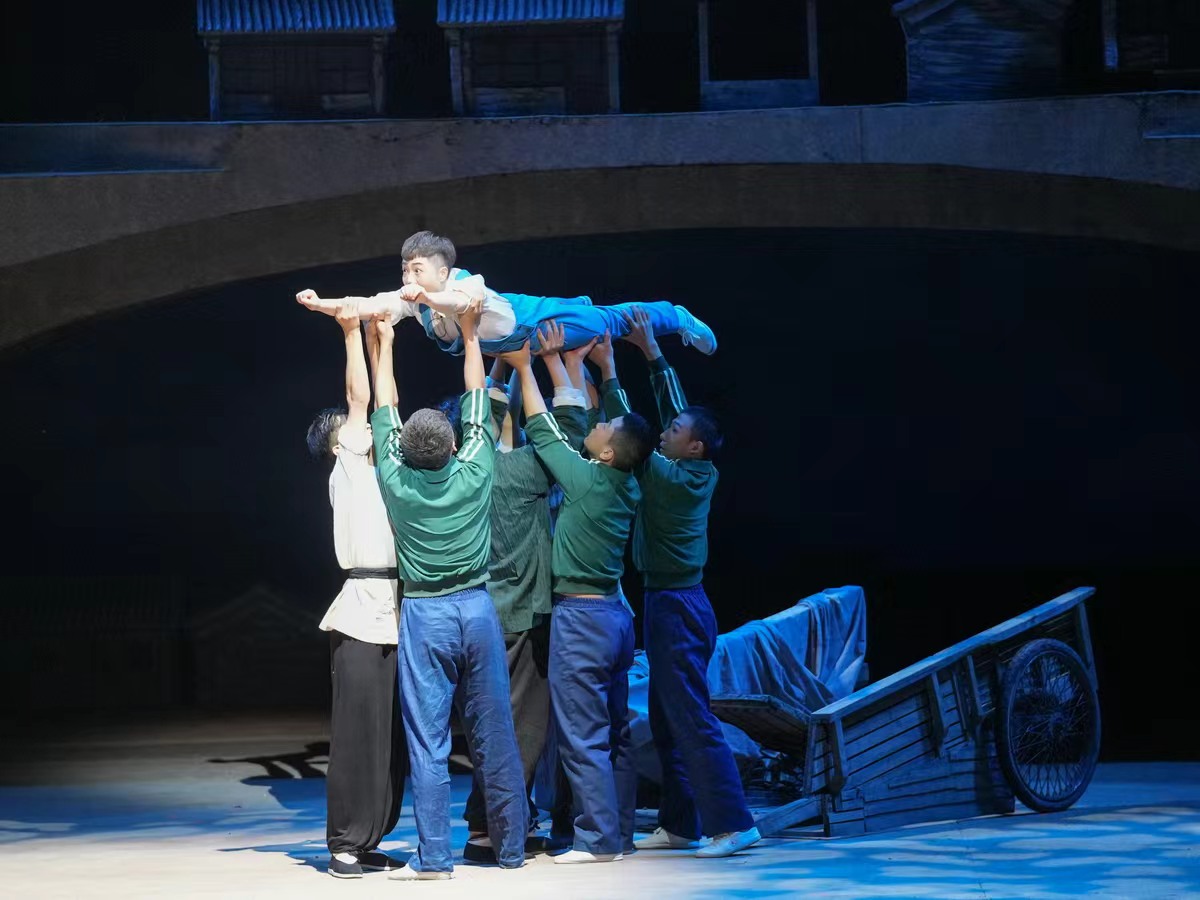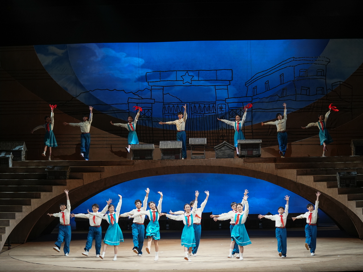 表演从一开始就营造出强烈的老北京魅力。在北海公园的白塔下,新中国成立之初,北京人的生活场景把人们拉回了60多年前的历史情境。船在水中飘荡,鸽子在天空中飞翔,孩子们在胡同里玩耍。北京戏剧系的学生表演了他们童年的天真和童趣。在这个过程中,年轻演员充分展示了京剧的“四功五法”,手眼走法。漂亮整洁的空翻大大增加了剧目的可见性,也展示了北戏推动戏曲艺术传承发展的教学成果。