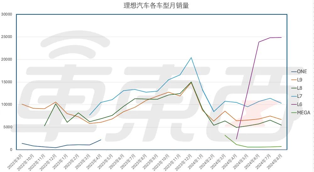 从图中不难看出,理想L7在2023年底交付后开始抬头,而理想L6在2024年4月交付后便一骑绝尘。