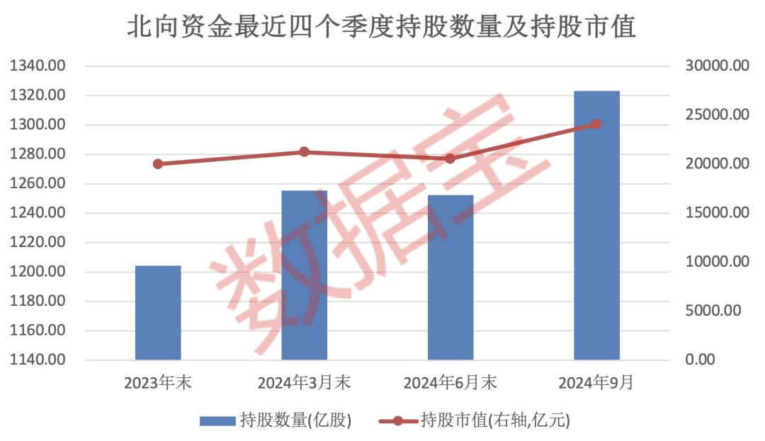 据证券时报•据统计,截至第三季度末,北向资金共有3341只股票,总持股1323.12亿股,市值2.41万亿元,与8月16日北向资金日频数据停止前相比,北向资金持仓增长72.12亿股,环比增长5.76%,持股市值增长4965.25亿元,环比增长25%以上。
