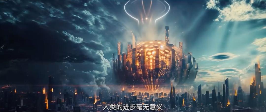 其次,在置景方面, AI短剧有着得天独厚的优势。包括浩瀚的宇宙、深邃的海底,或是遥远的历史时代,AI短剧都能通过算法模拟出逼真的环境,为观众带来身临其境的视觉体验。《三星堆:未来启示录》就汇集了诸多“烧钱”的大场面,如发生异变的金字塔古文明遗迹、人工智能超脑对决人类的末日场景、三星堆背后的古蜀国文明,场面宏大且代入感极强。