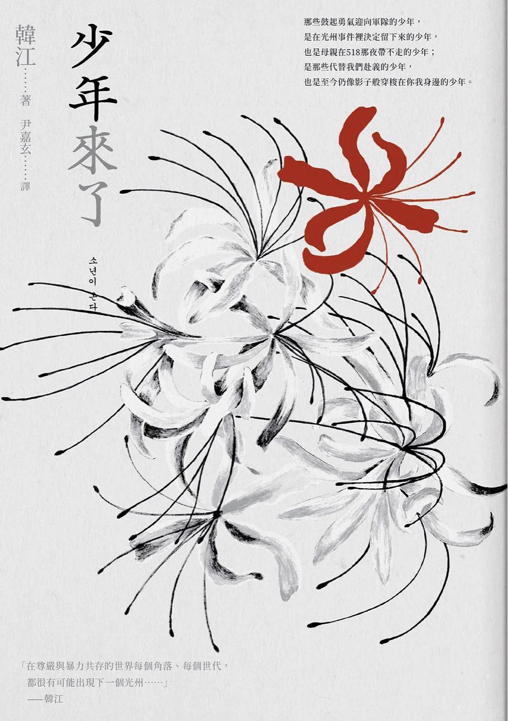 在《少年来了》(出版于2014年)这本书中,身为光州人的韩江终于不可避免的写回了光州。此故事以真实历史“光州518事件”为创作背景。相比于家庭中看不见的暴力,这本书讲述的是社会、国家机器对个体的暴力。