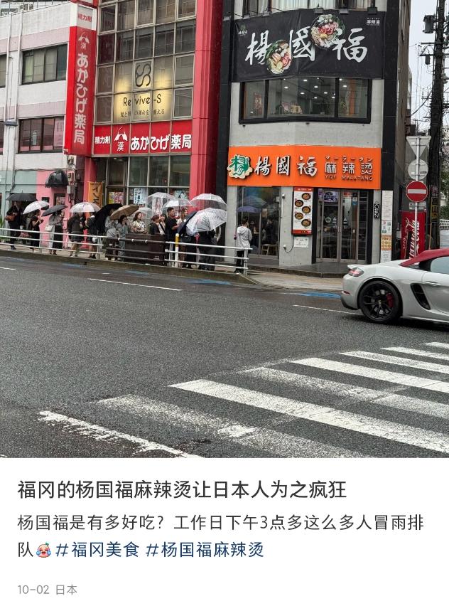 有人十一去日本旅游,远远到一家饭店排着长队,想一探究竟。