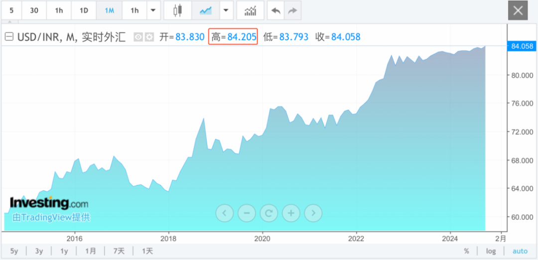 十月十四日,美元对印度卢比的汇率一度达到84.205,创历史新高。