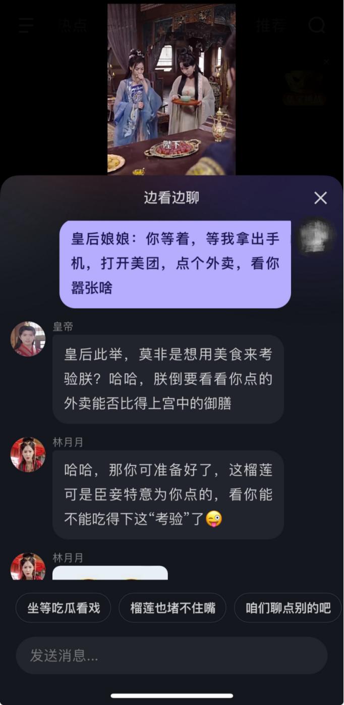 在功能方面,还有很大的扩展空间。目前用户与客户隔离,用户进入聊天界面,只看到Agent与Agent和自己与Agent的聊天。借鉴评论区的用户互动,我们也可以考虑在未来拆除用户之间的“壁垒”,进一步营造“在场”和“一起看剧”的沉浸感。