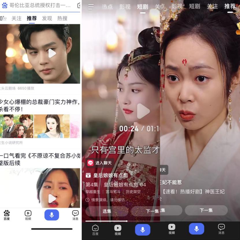 该功能在百度App中有三个入口,包括首页搜索推荐、二级入口视频推荐栏和短剧栏。到目前为止,Agent功能还在测试中,百度App中的短剧还没有覆盖,只有一些热门短剧可以刷出来。