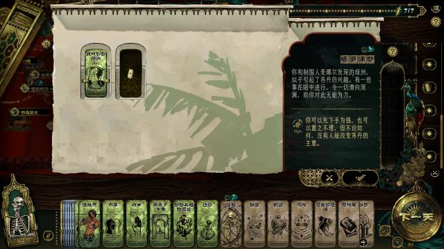 在游戏中,玩家不仅要与时间赛跑,还要时刻做出取舍。如果你不去朝廷,你可以节省人力去做其他重要的事情,但是主角的政敌可能会借此机会献出诽谤,增加苏丹的怀疑;去快乐的房子消费可以满足纵欲卡或者奢侈卡的要求,但是会引起老婆的不满。