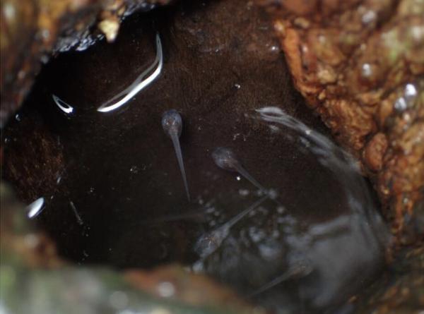 琉球原指树蛙(Kurixalus eiffingeri)蝌蚪通常生长在树洞的水中。 | 参考资料 [ 1 ]