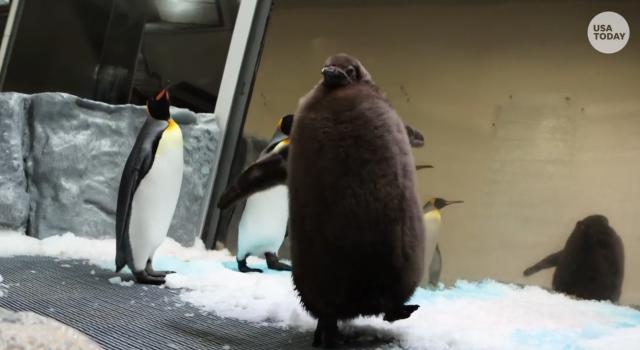 这里住在澳大利亚的一个海洋馆里。王企鹅幼仔佩斯托(Pesto),因为一顶两的身材,最近成了企鹅中的顶流。这位大胖小子现在才刚刚成为企鹅。 9 个月大,但体重已达 23.5 KG,赶上一个煤气罐;它的父母只有一个 11 公斤重,加起来不如它。曾经是海洋馆里最重的企鹅的佩斯托长辈,给它的体重带来了基因优势。