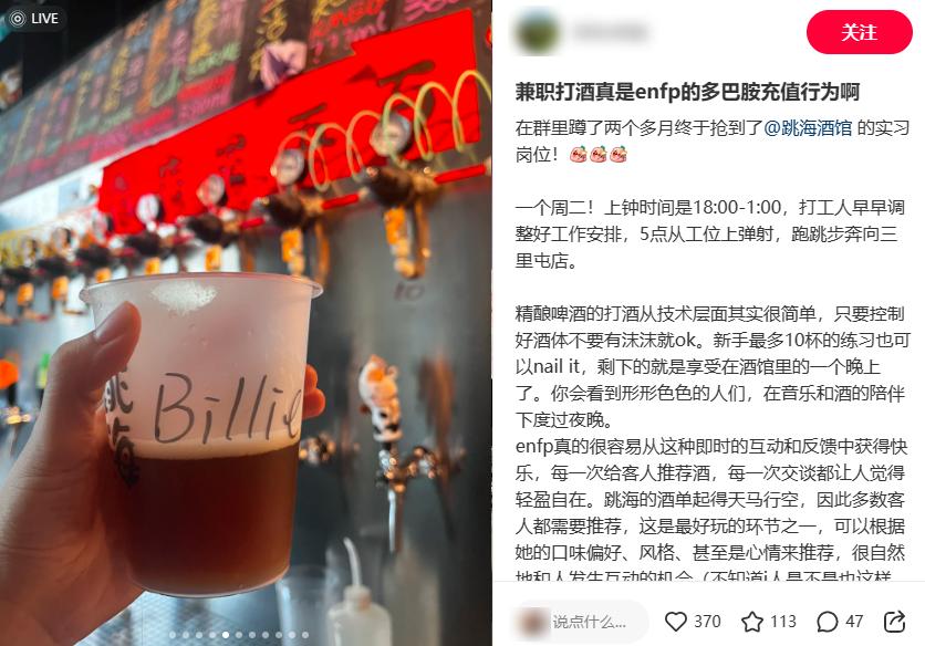 跳海虽然没有太多的投资,但“社区酒吧”的独特定位和强大的私域粘性,以及庞大的酿酒师团队,让这个品牌在成立之初就在社交平台上出名。