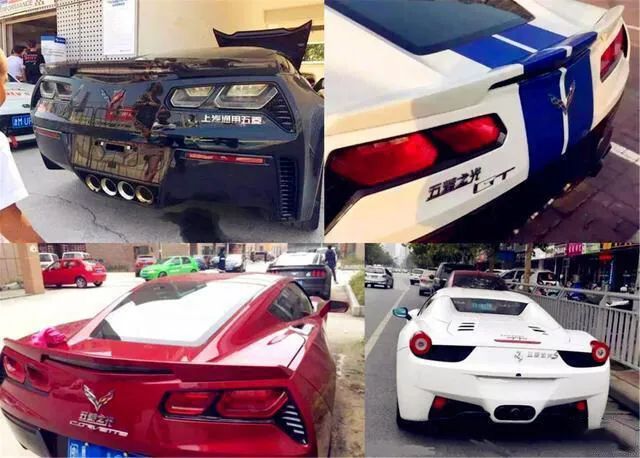 各种车辆在网上贴上五菱宏光或五菱之光标志的图片。