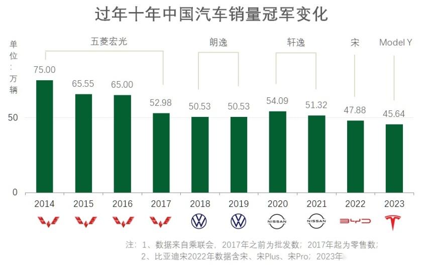过去十年的数据显示,中国最畅销的汽车车型是五菱宏光、大众朗逸、日产轩逸、比亚迪宋和特斯拉Model。 Y。