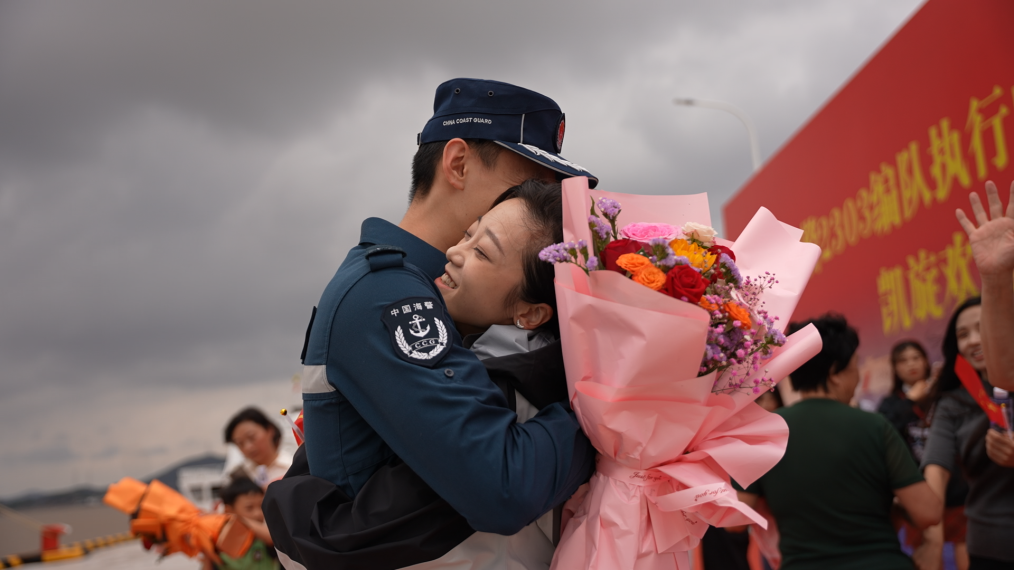 上午10点左右,海警梅山舰和秀山舰依次停靠码头,中国海警局直属第二局在码头举行盛大的欢迎仪式,迎接编队凯旋。