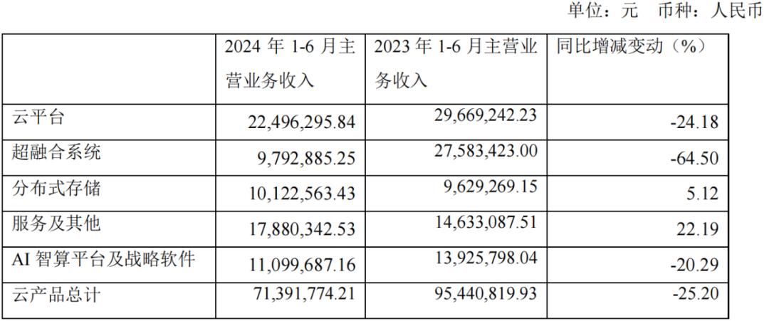 但是,一年后,青云科技的新增长曲线出现了下滑迹象。2024年上半年,青云科技AI算率业务收入达到2359.51万元,同比下降10.98%,而AI智算平台和战略软件收入达到1109.97万元,同比下降20.29%。