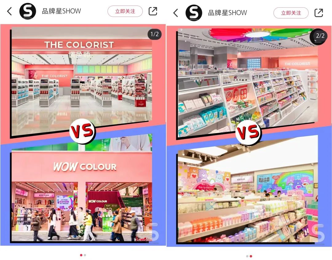 据弗若斯特沙利文报道,仅就总成交量而言,2020年调色师在中国美妆潮流零售商中排名前五。截至发稿前,调色师门店数量已接近350家,但根据公开信息,WOW 开设260家COLOUR商店。