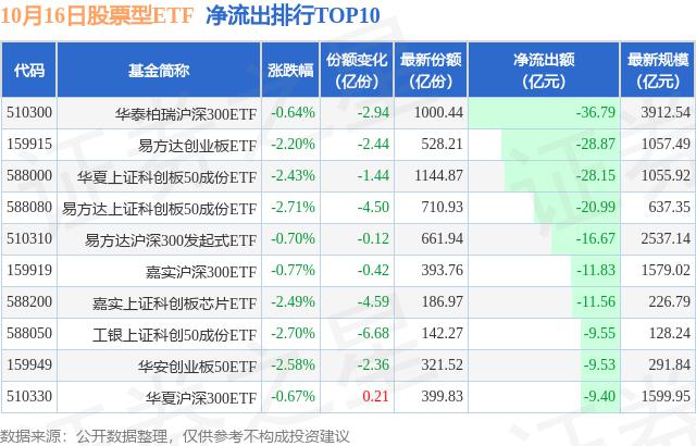 十月十六日,ETF净流出246.6亿元