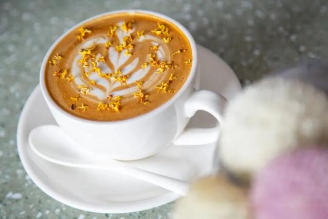 近几年,连咖啡店都很受欢迎,秋天撒一把桂花在拿铁上。|图虫创意