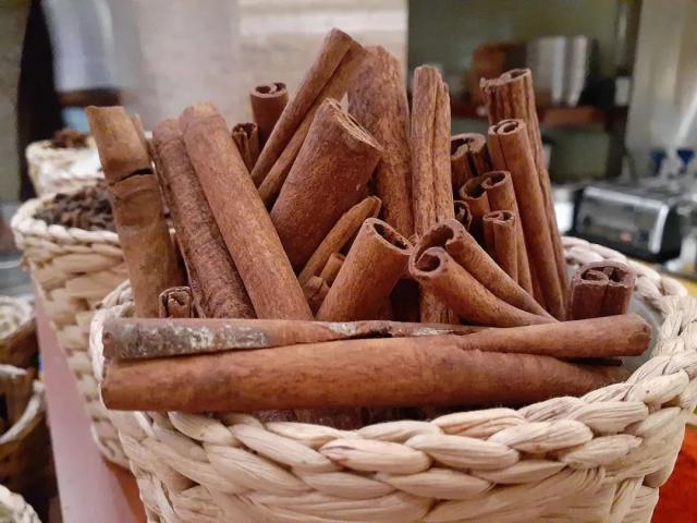 肉桂(Cinnamomum cassia)因为它有独特的香味,所以它会被制成香料和精油。肉桂树皮晒干了就是桂皮,其主要芳香成分包括肉桂醛,γ - 松油烯、α - 芹菜等,其中肉桂醛味道辛辣,γ - 松油烯和 α - 芹子烯分别具有柑橘香味、甜味和丁香味和土壤香味。从肉桂的树皮和枝叶中提取的肉桂油,肉桂醛是主要的芳香成分,α - 蒎烯等,α - 烯的味道是甜的,更接近木质的香味。两者的结合,营造出肉桂的特殊香味,辛辣、甜美、醇厚、温暖。我想每个人在煮肉的时候都见过。