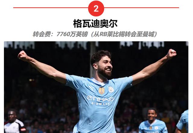 在莫伊塞斯 · 在凯塞多与切尔西签约之前的一周,格瓦迪奥尔在英超历史上一直保持着 U21 这位克罗地亚后卫是球员最昂贵的转会记录。 RB 在莱比锡成名之后,于 2023 年 8 月以 7760 万英镑的转会费加入曼城。