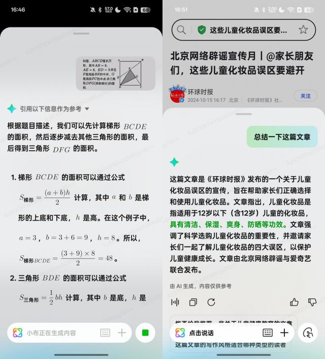 家里有孩子。如果遇到做不到的数学题,也可以请小布帮忙。可以准确展示做题的详细步骤和思路,不仅可以知道题目的答案,还可以帮助孩子理解做题的过程。平时遇到长文,也可以让小布帮你总结主要内容,节省时间和成本。