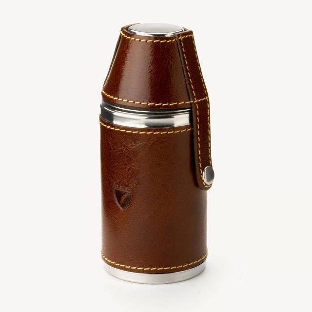 Aspinal of London 作为皇家级英国高档包包和皮革制品品牌,永恒优雅的英国风格被不断通过制作精美、质感上乘的皮革制品来定义。这款皮革酒壶采用耐用不锈钢材质,表层为精致的咖啡色全面皮革护套,6 盎司规格适中,可放入口袋,伴有两个不锈钢小酒杯,方便与朋友分享。