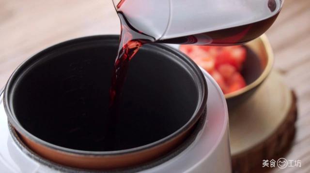 3. 倒入红酒,盖盖按下烹饪按钮,煮约。 15 分钟。