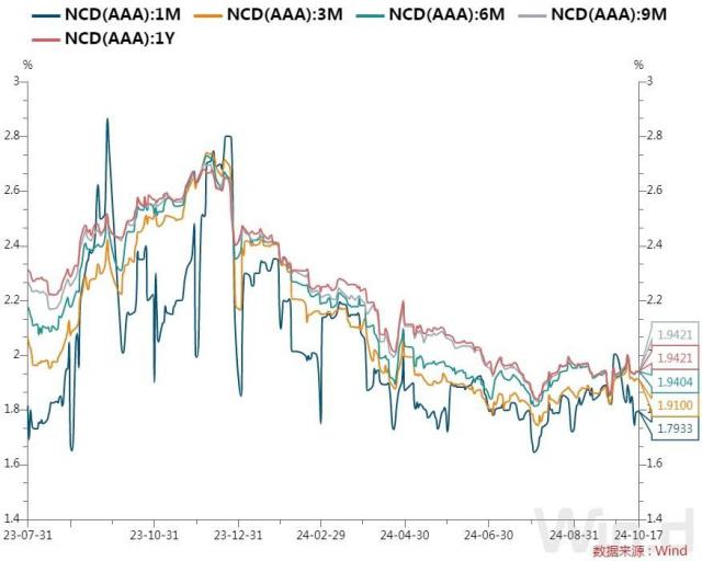 国有和主要股份制银行一年期同业存单二级最新交易在一年期 1.94% 与上日相比,周边地区微升不足。 1bp。