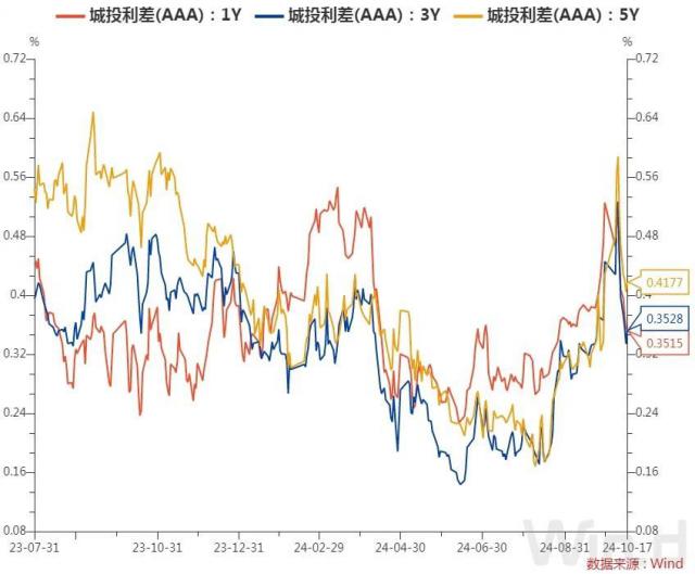 5. 最近城投债(AAA)每个期限的利差走势和数据。