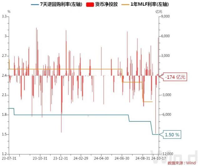 央行 10 月 17 日以固定利率、数量招标方式进行 1326 亿元 7 天期逆回购操作,操作利率 1.50%。Wind 数据显示,当天 1500 逆回购和亿元 700 财政现金定期期满1亿元。