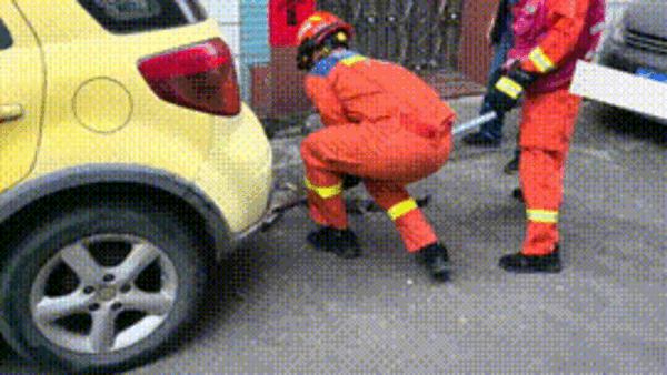 消防队员迅速到达现场,通过观察确定了鳄鱼的位置,发现它藏在一辆汽车的底部。为了确保周围居民的安全,消防队员立即当场发出警告,并开始捕捉鳄鱼。