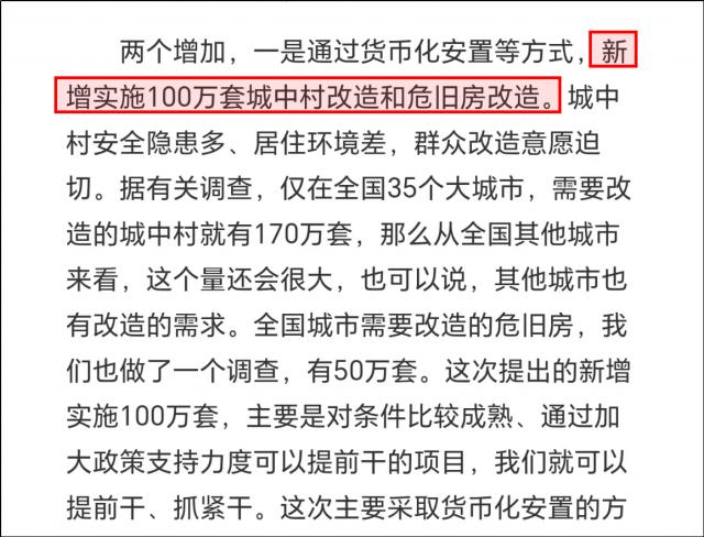 换言之,昨天的会议提出了新的建议 100 城中村改造万件还留余地