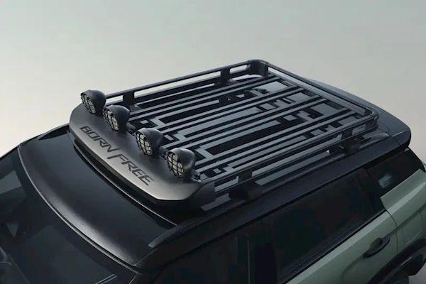 从官方发布的细节图可以看出,新车采用了双色车身和悬挂车顶,超大型越野装备架也在车顶上扩展。前端还配备了四个户外照明系统。据了解,车顶行李架的货物面积是 1.3㎡,承载量为 50 KG。