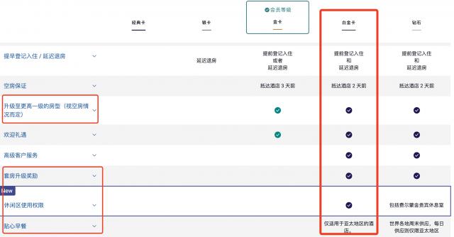 事实上,如下图所示,雅高银卡基本上没有权益。从金卡开始,可以升级到一级房间,铂金可以享受行政酒廊。雅高铂金是一个质的飞跃。