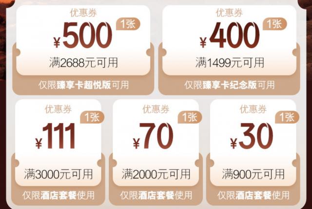 3 大型住宿优惠:6 折房券 1 张、7 折房券 2 张,延迟退房券 1 张