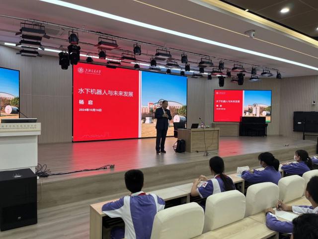 10 月 17 日本,在徐汇区教育学院附属实验中学礼堂,一场关于水下机器人的科普讲座带领七八年级学生探索水下世界的奥秘。本次讲座的主讲人是上海交通大学特聘教授、博士生导师杨启。