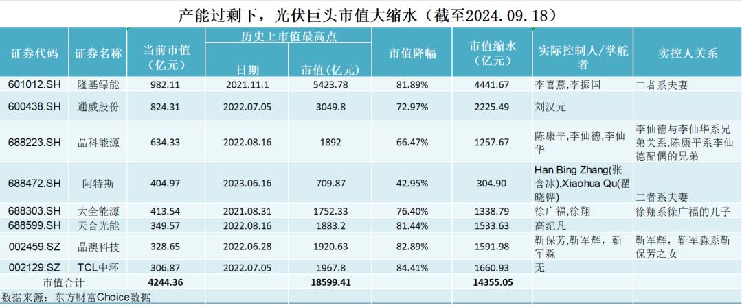 巅峰时期,光伏8巨头总市值达到1.86万亿元,到9月18日仅剩4244亿元,短短三年就挥发了1.44万亿元!