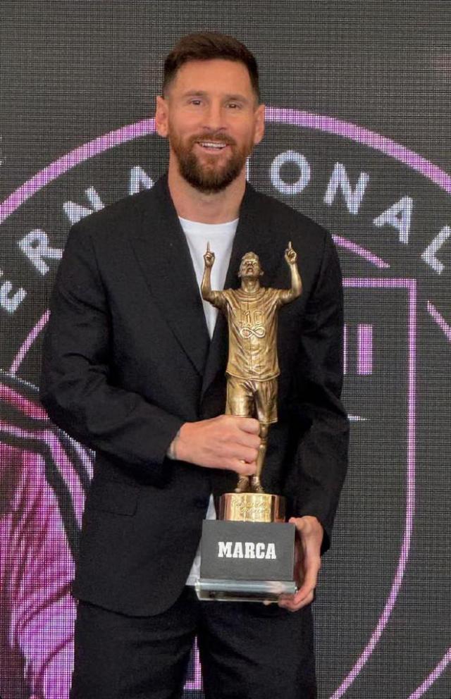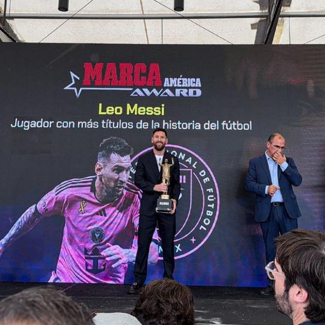 北京时间 10 月 18 日本,西班牙著名媒体《马卡报》在迈阿密主场为梅西举行颁奖仪式。他们给了梅西一个特别的奖项——马卡美国奖,向梅西成为历史上冠军最多的球员致敬。