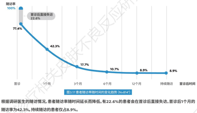 根据《2024中国肿瘤临床诊断和治疗皮肤不良反应现状调查报告》,皮肤科肿瘤患者第一次就诊后一个月可以复查的,可能只有40%,继续随访的患者不到10%。