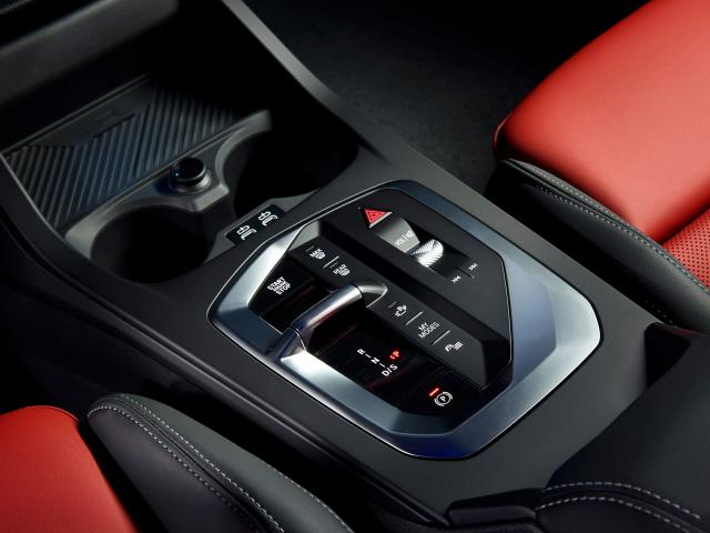 全新的出风口造型已在新款中 3 系与 4 我在上面看到过,进一步削弱了出风口的外框,在上面融入了氛围灯;下面是一个大储物空间,配有无线充电面板。相信大家对宝马全新的电子换挡机构并不陌生。