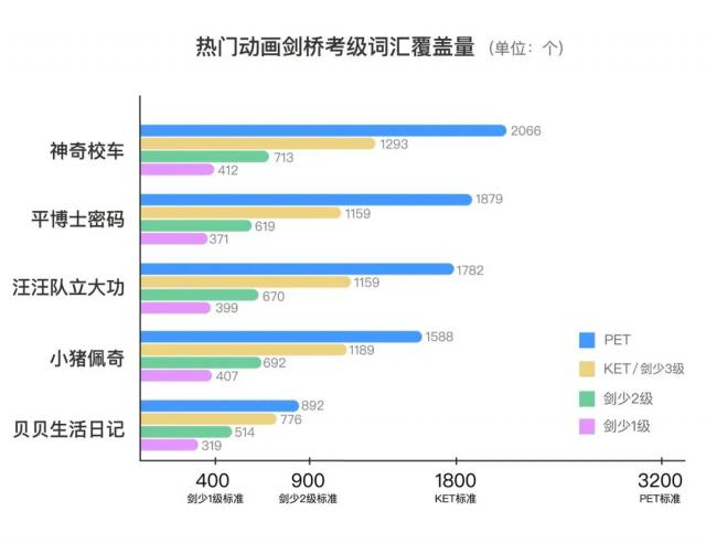 在一些热门动画中,剑桥考级词汇的覆盖范围很小。↓