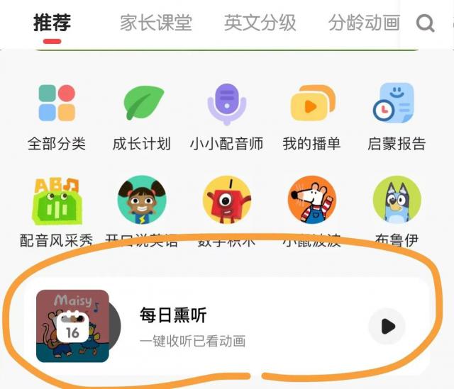 听众中的各种资源也能让孩子自己听,如果担心孩子的眼睛,就能打开它的“熏听”功能。