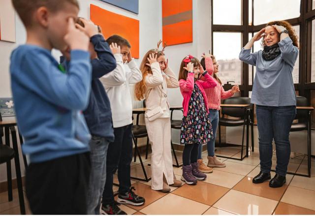 在唱歌时带孩子做相应的肢体语言,以帮助理解单词的含义,这是一种可理解的输入。