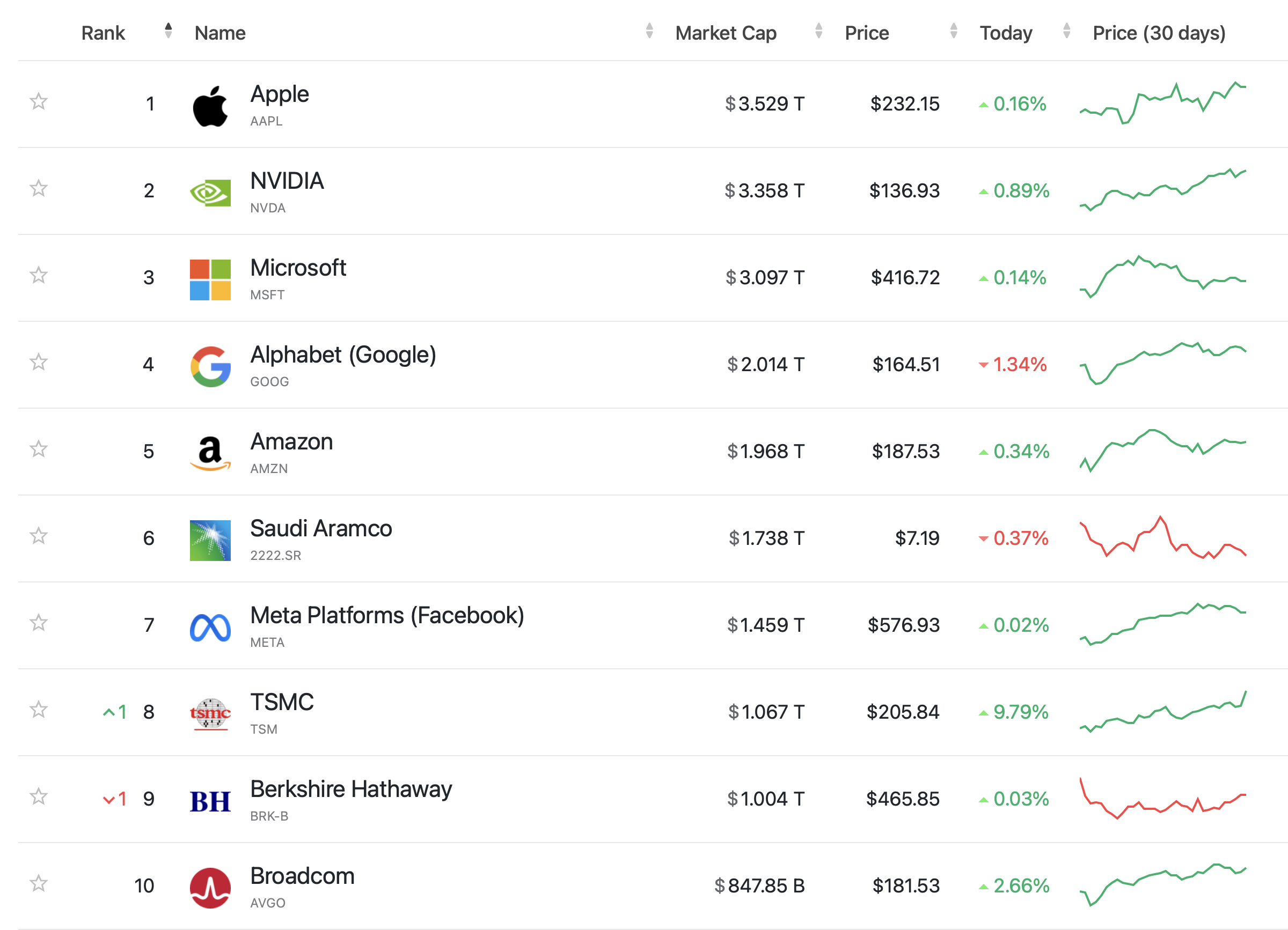 值得注意的是,台积电1.07万亿美元的市值使其成为世界第八大市值企业,仅次于苹果、英伟达、微软、谷歌、亚马逊和Meta。