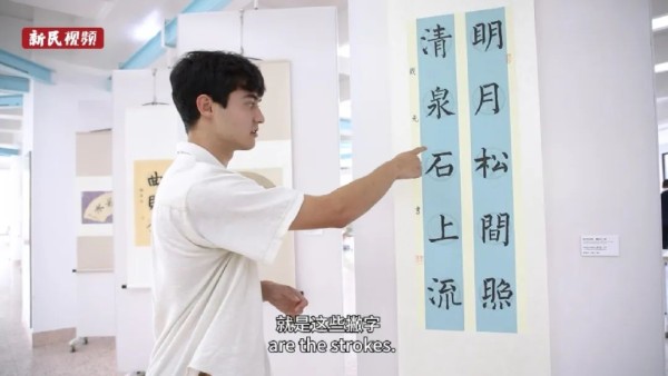 他站在自己写的唐诗之前,侃侃谈到了“意境之美”:"这是王维写的,‘明月松间照,清泉石上流’,是一幅简单的画面,看完之后,静谧的气氛出现在我眼前。诗歌就是画,画中有皓月,有松树,有泉水,有石头。“通过日复一日地练习书法,戴光磊不仅提高了他的写作技巧,而且提高了他对中文语义的欣赏能力,尤其是诗歌和名句。这位荷兰小伙通过书写汉字,在探索中华文化时,获得了最可靠的抓手。