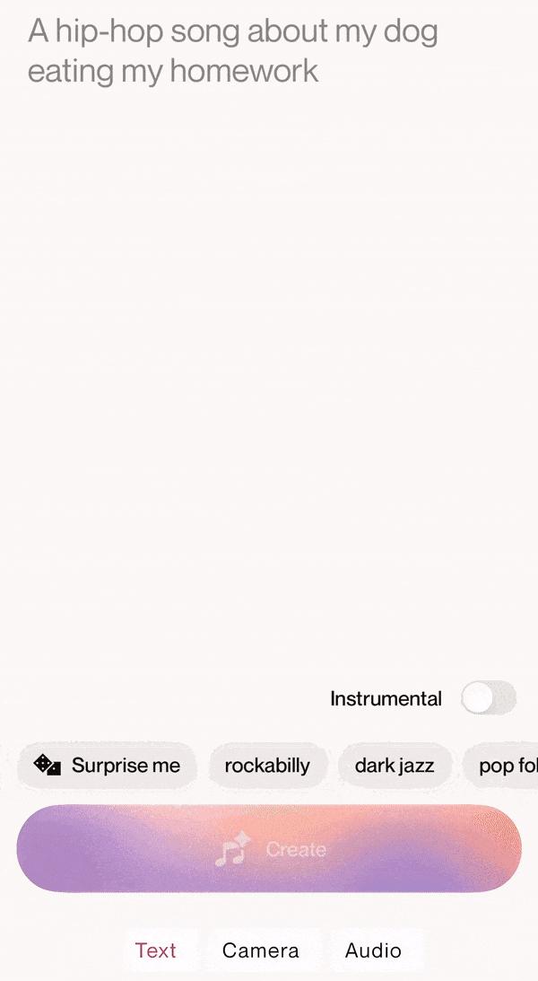 洗澡时哼唱一首歌,或在厨房厨具上即兴发挥节奏,均可使用。 AI 制作完整的歌曲。
