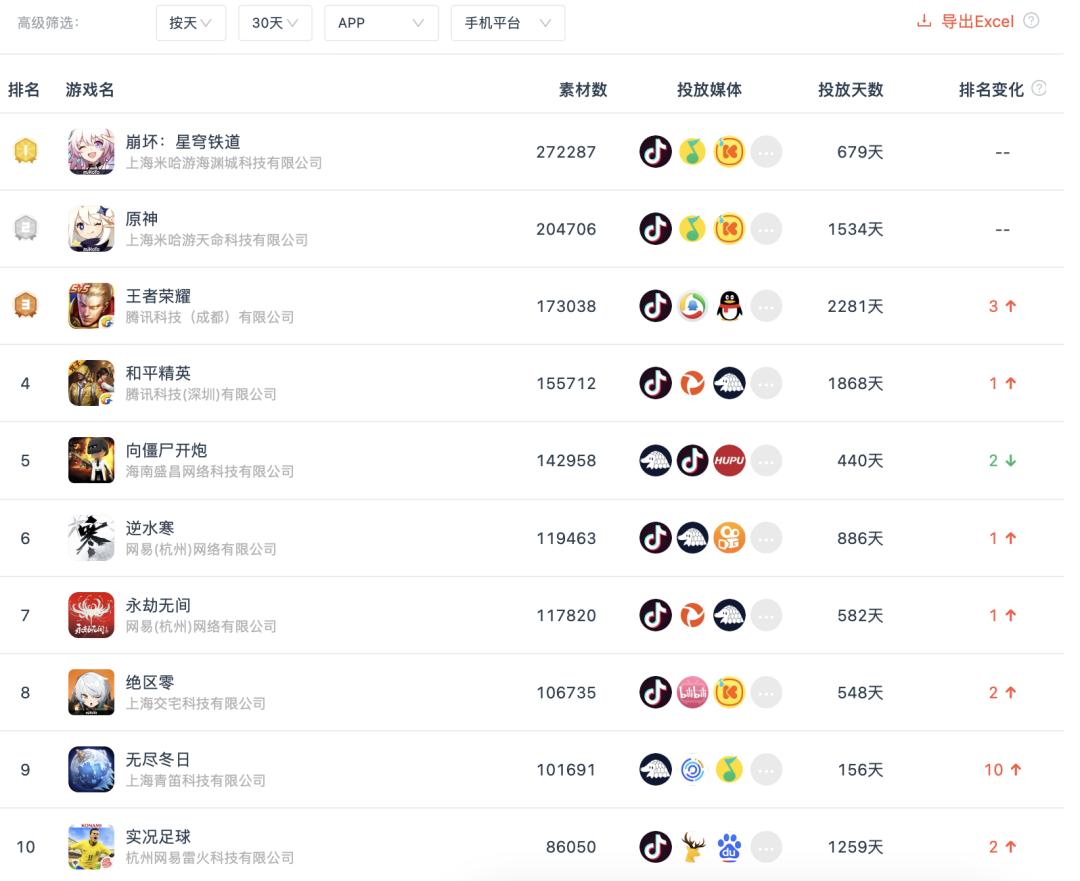 近日,DataEye研究所发现,在过去的30天里,米哈游的三款产品占据了中重度游戏app资料排行榜前十,而且《原神》、领先于崩铁。