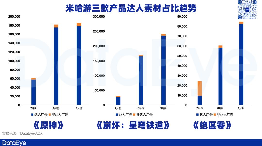 二是米哈游新玩法:初期高质量素材立品牌,后半期铺达人素材