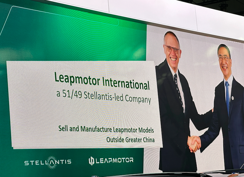 零跑科技董事长朱江明、零跑国际天舒、Stellantis集团唐唯实三位CEO同场。虽然双方的合作是你的愿望,但一个是市场,一个是技术,地位应该是平等的。然而,当朱江明和唐唯实握手时,他们在PPT字上伸出了更长的距离和“a 51/49 Stellantis-led company“上面不难看出,后者的姿态比前者高。