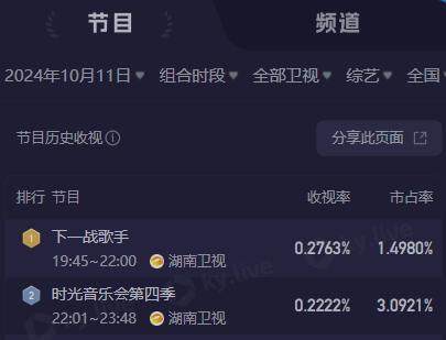 就电视而言,酷云显示,《时光音乐会4》在次黄金档播出的收视率仅为0.22%。,芒果电视的网络播放数据也不算优秀。截至10月17日,第一期全片累计播放量为1.7亿。无论是收视率还是播放量,连芒果同期播出的《下一战歌手》都不如,一直被嘲讽。