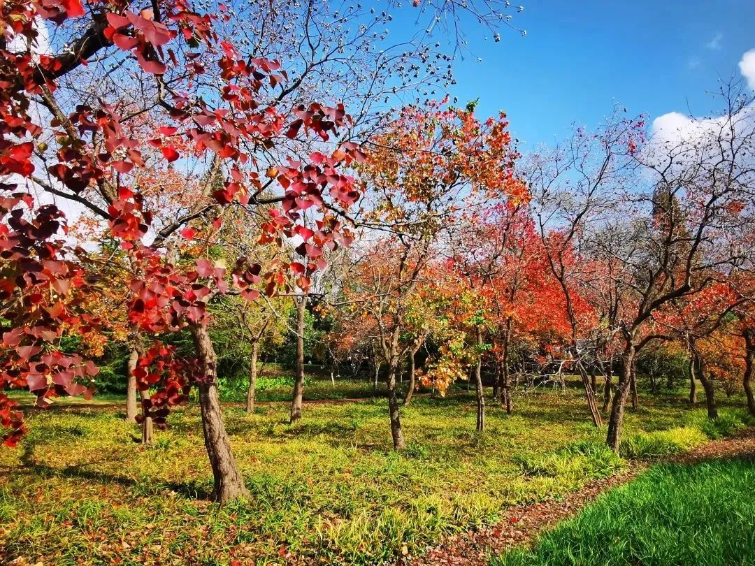 化妆草所在的水杉镜林是外环生态绿道不容错过的景点,一年四季都有不同的美景。春天,有紫叶和李子的浪漫;夏天,草坪上的各种花朵相互竞争;秋天,银杏的金黄色和乌龟的火红为这里增添了无尽的魅力。