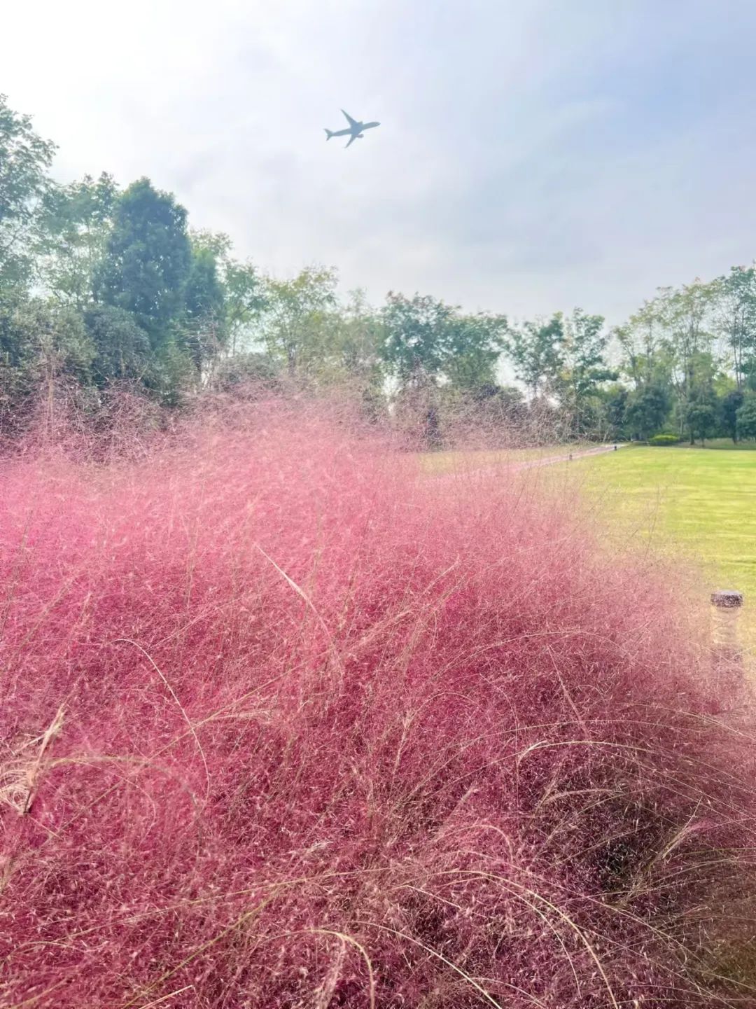 更令人陶醉的是,在虹桥体育公园,你可以一边仰望星空中的飞机,一边欣赏化妆和杂草。坐在柔软的草坪上,欣赏飞机穿越天空,随风摇曳,这是秋天最浪漫的风景。